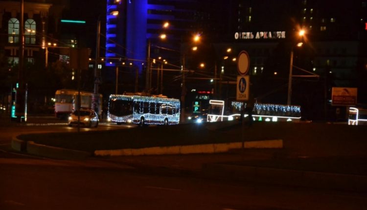 Троллейбусы, украшенные новогодней иллюминацией, проехали по улицам Одессы. Стартовал парад с разворотного кольца на улице Инглези в 19:00.