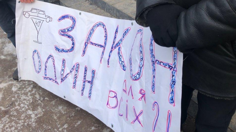 Как сообщили организаторы акции, ее цель – привлечь внимание к ДТП и не позволить «спустить на тормозах расследование убийства». К отделению полиции пришли до 30 активистов и местных жителей. Они держали плакат «Закон – один для всех?».