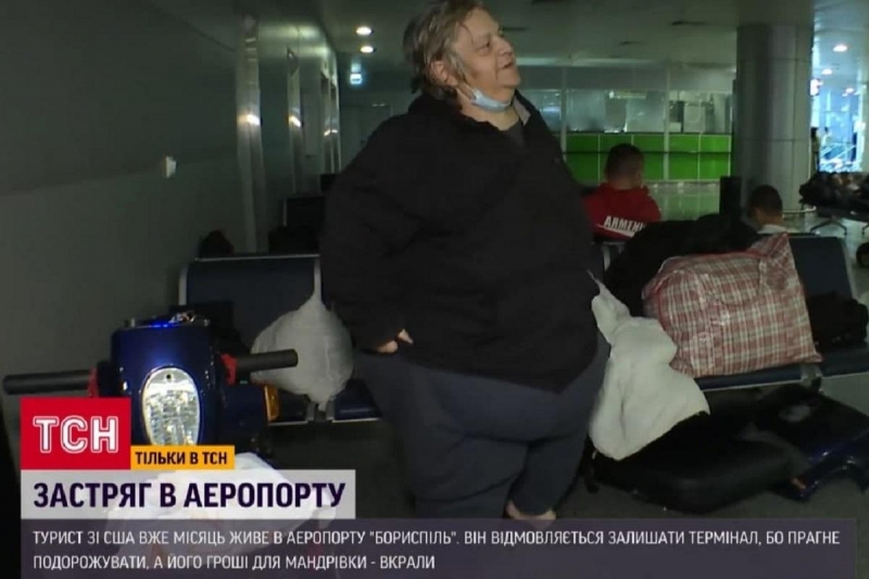 В украинском аэропорту «Борисполь» ограбили 54-летнего американца, который весит более 180 килограммов и не может самостоятельно передвигаться. Теперь он вынужденно живет в терминале аэропорта, хотя имеет возможность вернуться на родину.