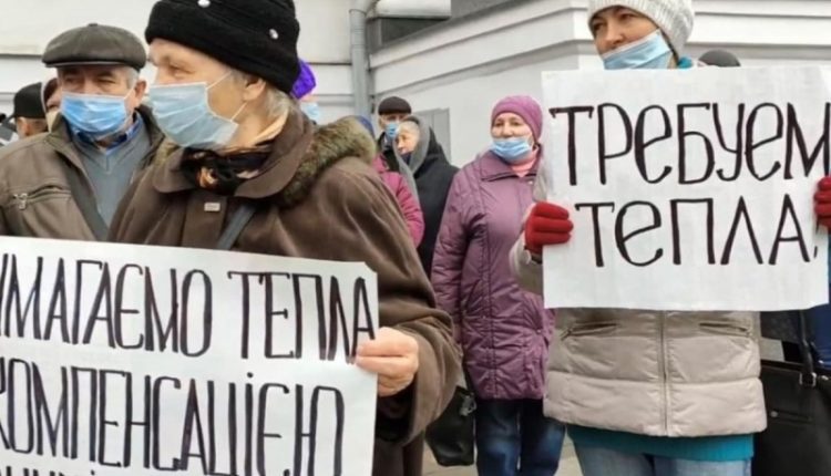 В понедельник, 1 ноября, в Полтаве около сотни жителей микрорайона №109 пикетировали мэрию из-за отсутствия отопления в квартирах.