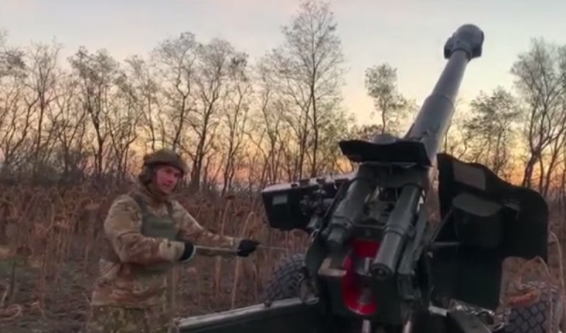 На ролике он стреляет из «Гаубицы Д-20» калибром 152 мм, восклицая: «По оккупантах огонь».