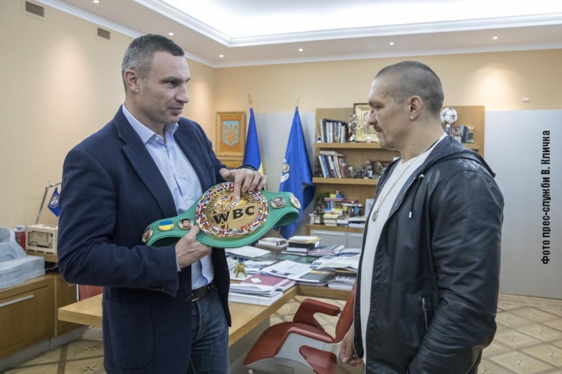 Кличко подарил Усику чемпионский пояс WBC на удачу