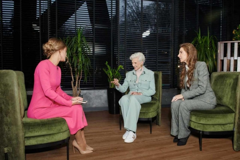 Вместе с бизнес-вумен, основательницей международной платежной системы LEO Аленой Шевцовой, по приглашению которой она и прибыла в Киев, 73-летняя Маск дала эксклюзивное интервью журналистам программы «Завтрак с 1+1».
