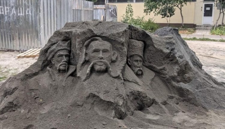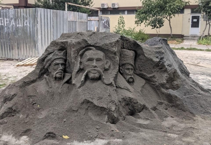 Кто-то создал из измельченных камней образы Богдана Хмельницкого, Ивана Сирко и Тараса Шевченко.