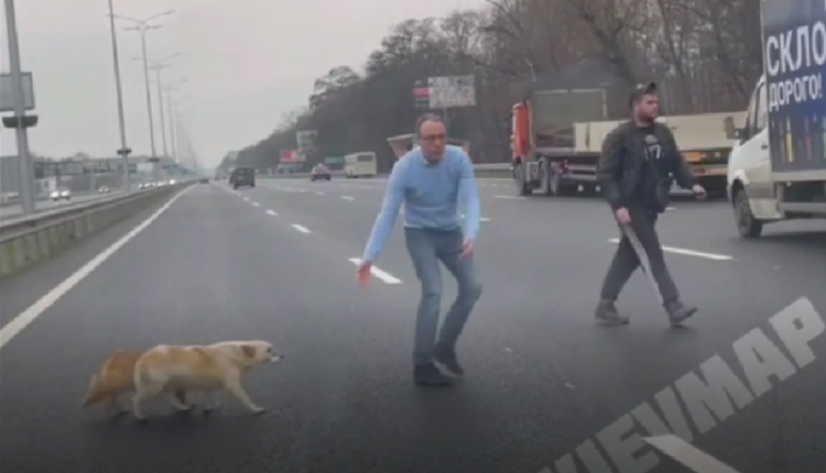 Под Киевом водитель остановил движение на трассе ради спасения собак: появилось трогательное видео