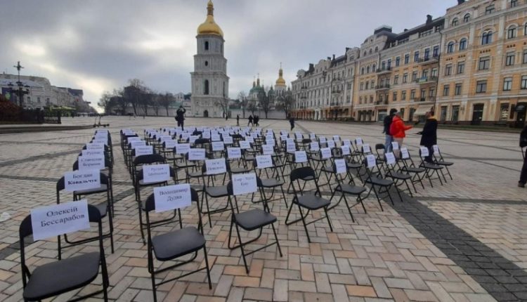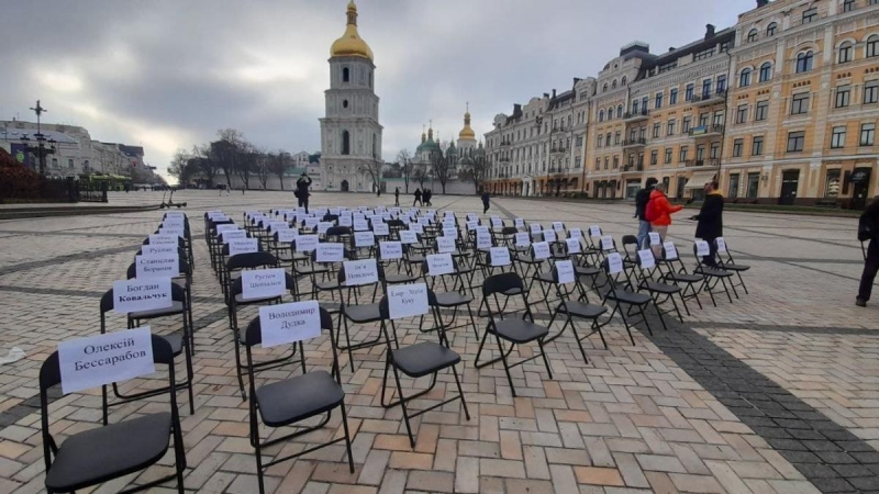 В Киеве на Софийской площади состоялась ежегодная правозащитная акция «Пустые стулья» в поддержку украинских политзаключенных в России и Крыму, а также пленных на оккупированных территориях Донецкой и Луганской областей.