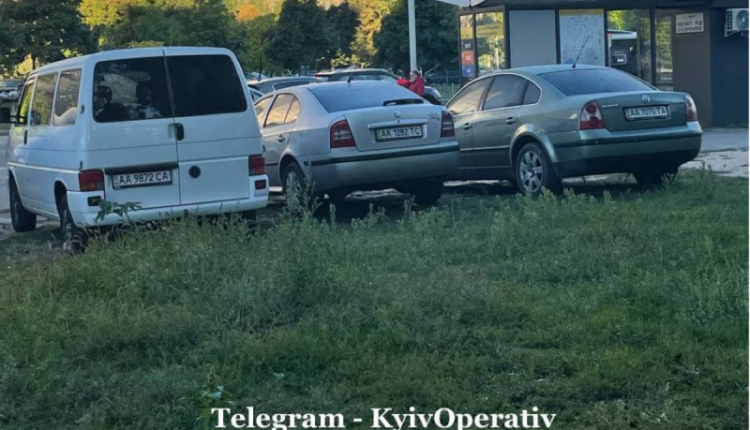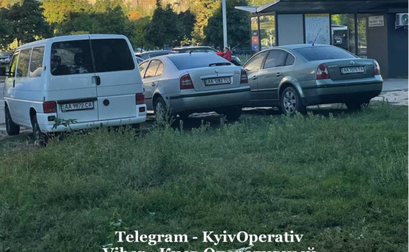 «Трое из ларца»: в Киеве водители «оккупировали» газон неподалеку от райотдела полиции (фото)