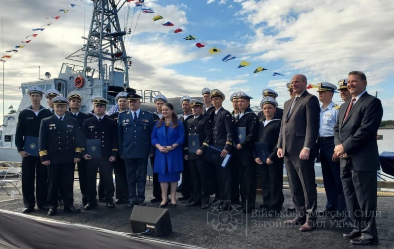 «Курс доподготовки под руководством иностранных инструкторов длился 6 недель и был проведен на верфи береговой охраны США. С украинской стороны церемонию возглавила чрезвычайный и полномочный посол Украины в США Оксана Маркарова. Американскую сторону представлял заместитель помощника командующего Береговой охраны США Джеймс Найт», — говорится в сообщении.