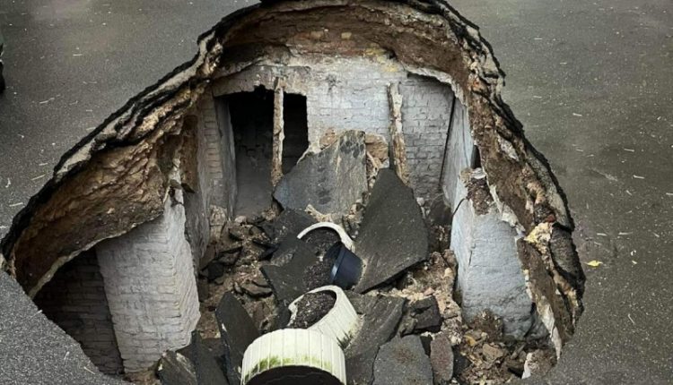 В Киеве провал в асфальте внезапно открыл подвал усадьбы начала ХІХ века (фото)